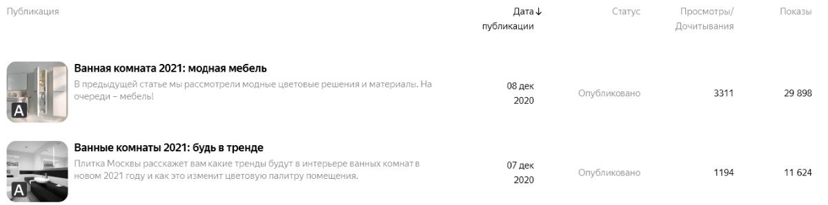 Это позволило набрать статьям большое количество просмотров, а выдвинутая нами гипотеза подтвердилась. Следовательно, контент об актуальных трендах дизайна интерьера действительно является нужным для целевой аудитории.