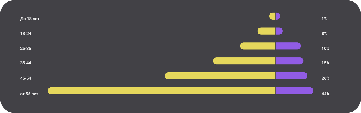 При этом было принято решение включать в статьи краткое описание плитки и активные ссылки, ведущие на сайт клиента. Оказалось, что наша ЦА гораздо больше, чем мы предполагали изначально. Возраст большинства пользователей попал в диапазон от 18 до 55+ лет.