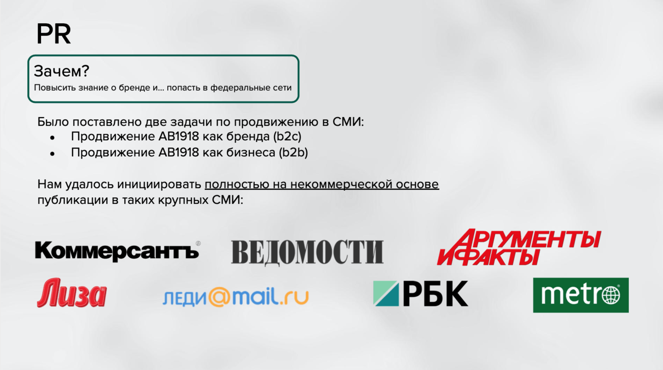1. Продвижение АВ1918 как бренда (b2c);