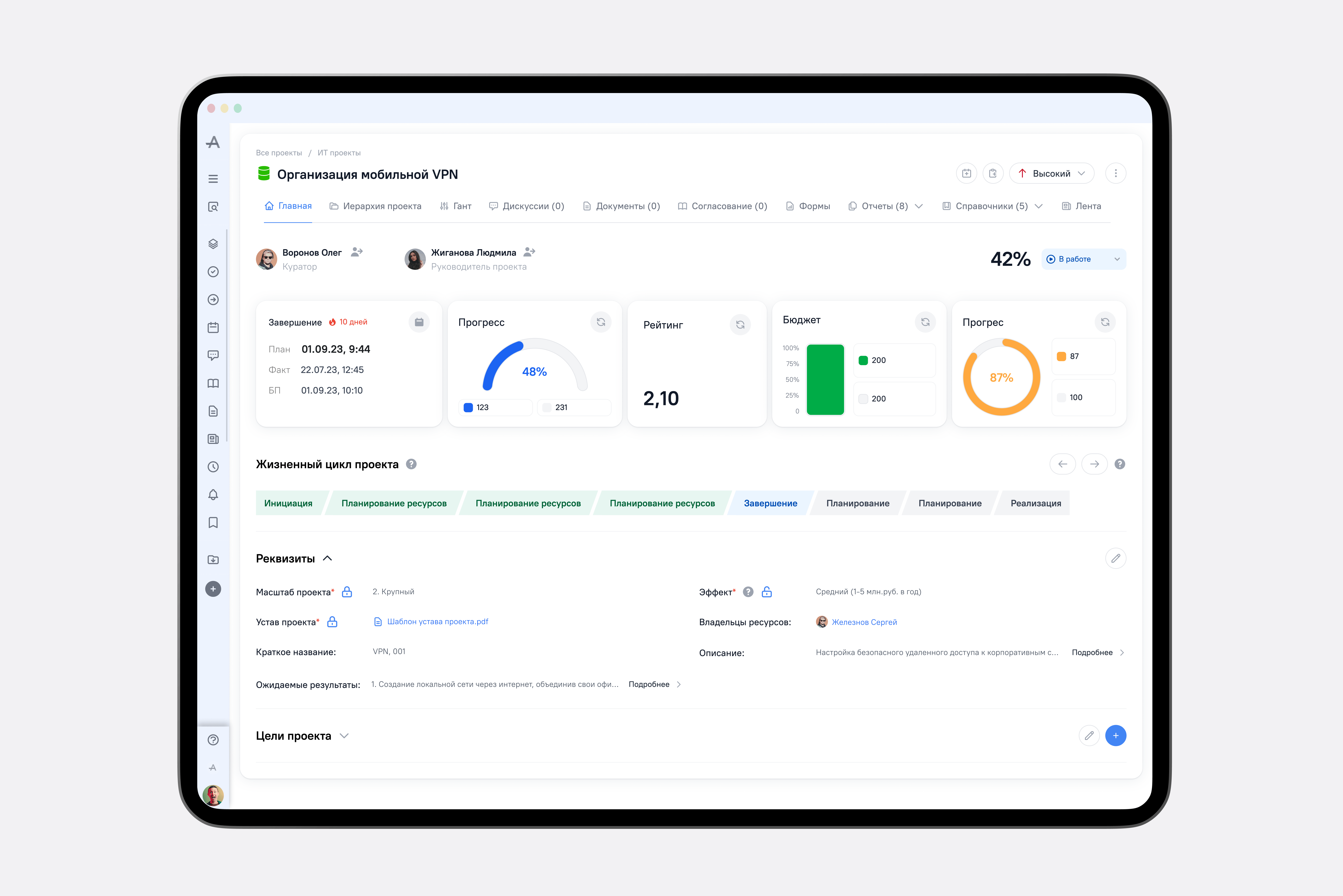 ADVANTA — аналог Asana и Jira, но с более широкими возможностями для управления крупными проектами (строительство, IT-разработка, госпроекты и др.). Платформа помогает управлять как отдельными проектами, так и целыми портфелями.