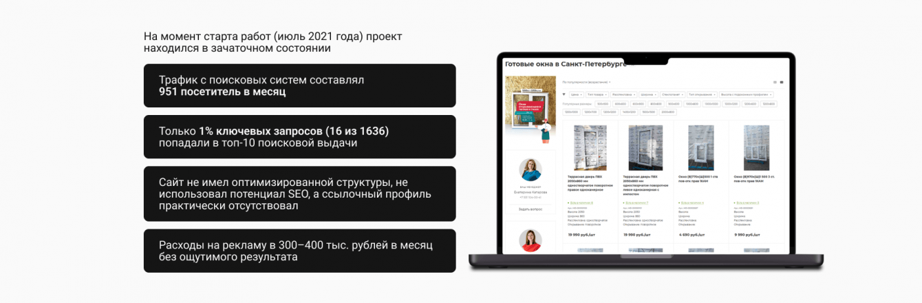 Одним из важных шагов стала переработка карточек товаров. Ранее они были минималистичными, что снижало привлекательность предложений. Мы добавили подробные описания, ключевые характеристики окон и улучшили фотографии.