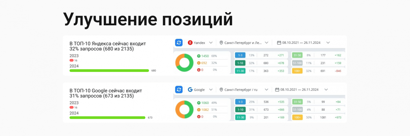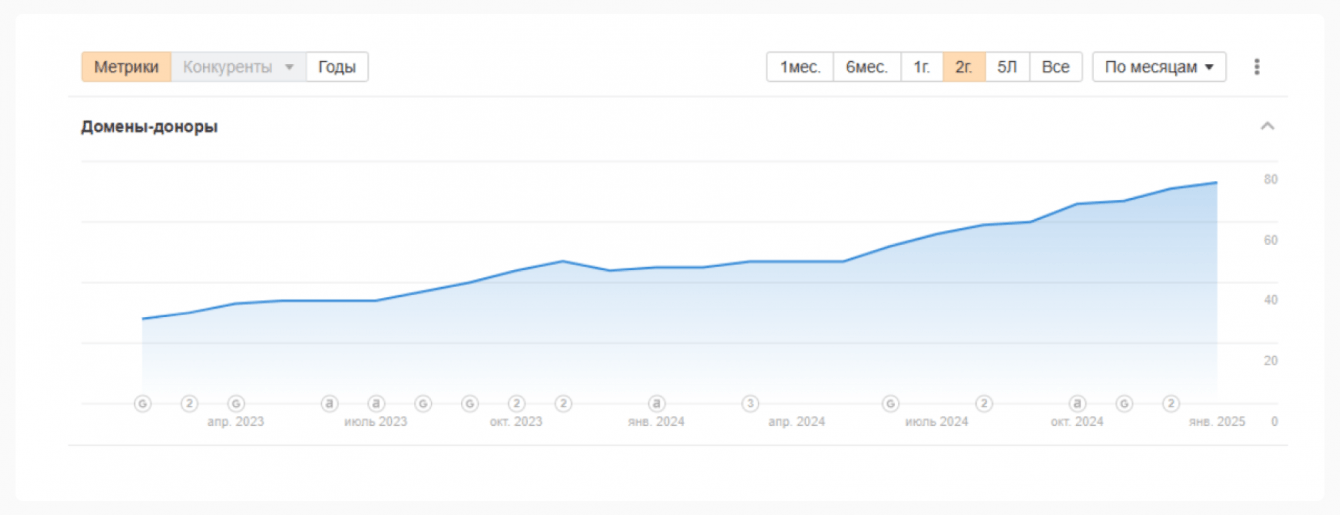 Рост внешних ссылок улучшил общий авторитет сайта, что положительно сказалось на позициях.