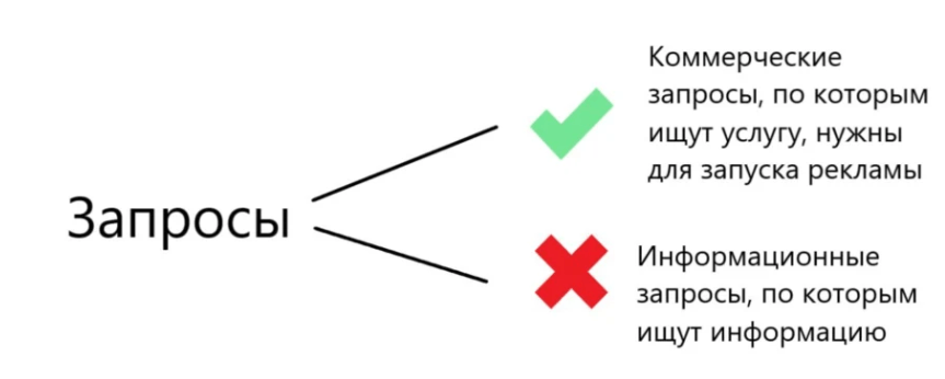 Рекламу можно запускать и по информационным запросам, но это стоит делать только в качестве эксперимента, когда уже подобраны все коммерческие запросы.