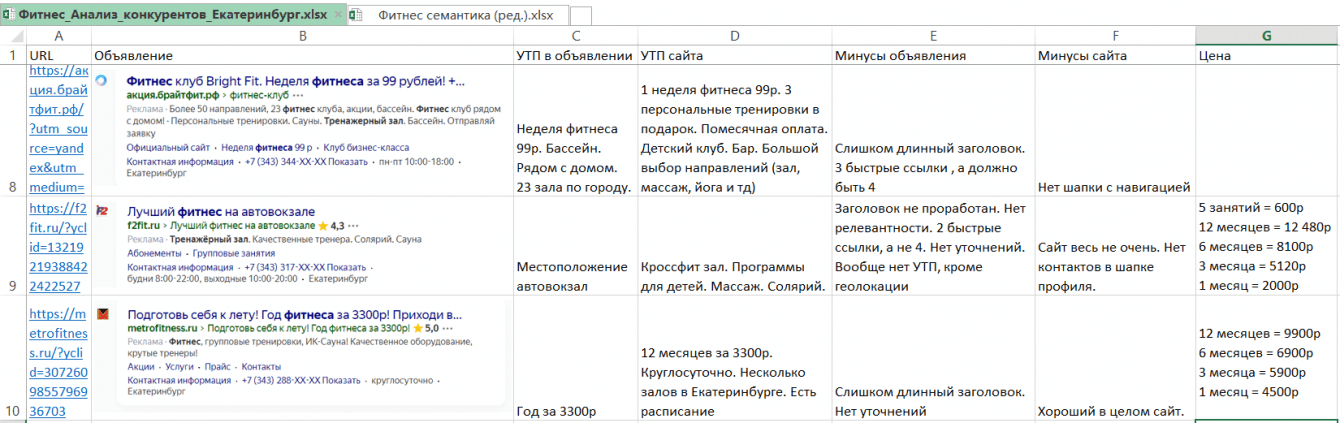 1. Проанализировали конкурентов в платной рекламе Яндекса — кто они, насколько качественно у них проработаны объявления, какое у них УТП и как выглядят их сайты.