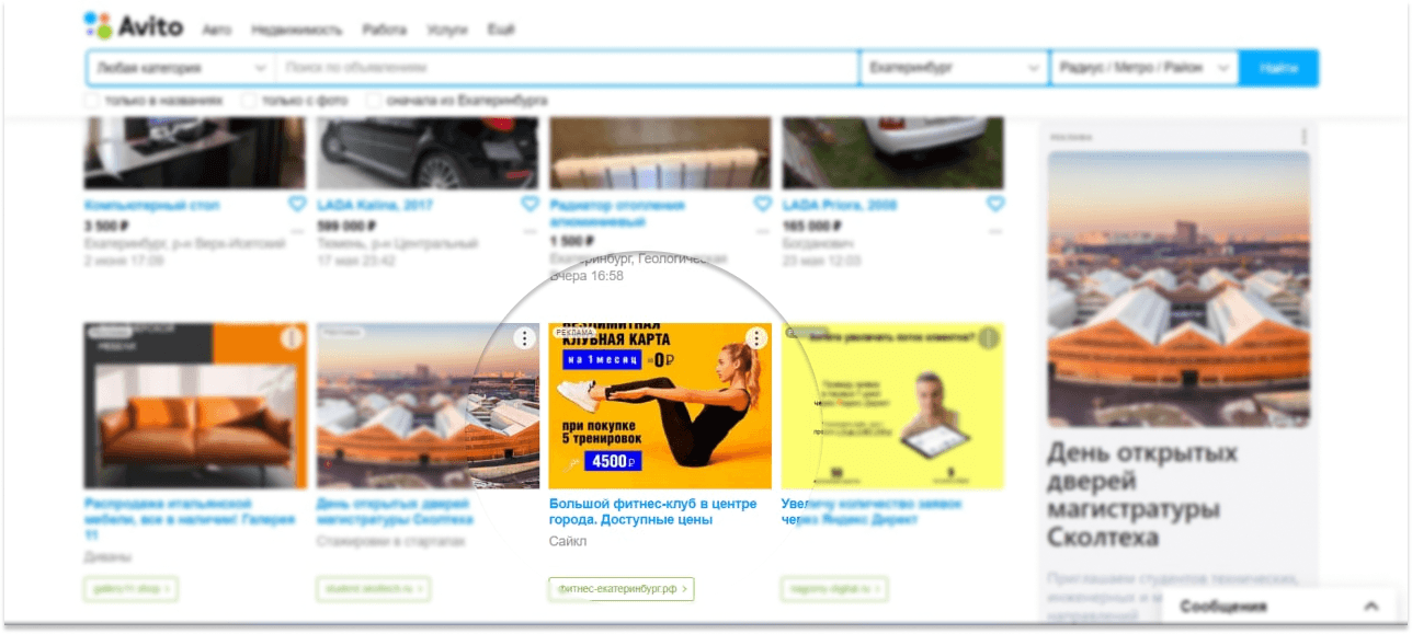 В РСЯ можно настроить рекламу по интересам целевой аудитории, её любимым местам или сайтам. Мы настроили на тех, кто посещал сайт главного конкурента нашего фитнес-зала