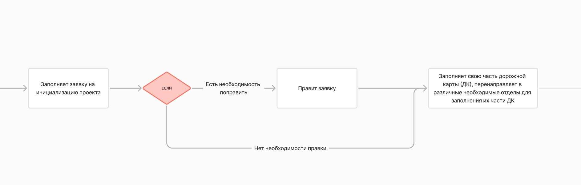 Далее мы представили бизнес-процесс в виде визуальной модели — это позволило клиенту наглядно увидеть текущую схему взаимодействия, согласовать её и понять, где возможны автоматизация и оптимизация. На основе этой модели мы определили ключевые точки для цифровизации и предложили решения, соответствующие целям клиента.