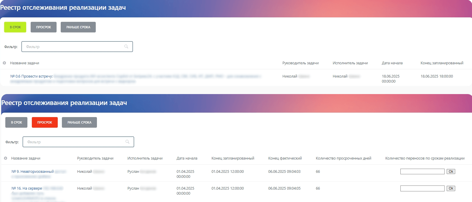● Оперативное вмешательство в случае просрочки отдельных задач;