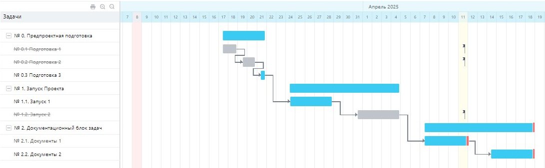 Ключевая особенность настройки — динамическое обновление сроков. Если срок одной из задач изменяется, система автоматически корректирует сроки последующих задач.
