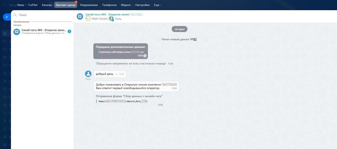 ► Создание новых заявок из онлайн-чата на сайте в реальном времени.