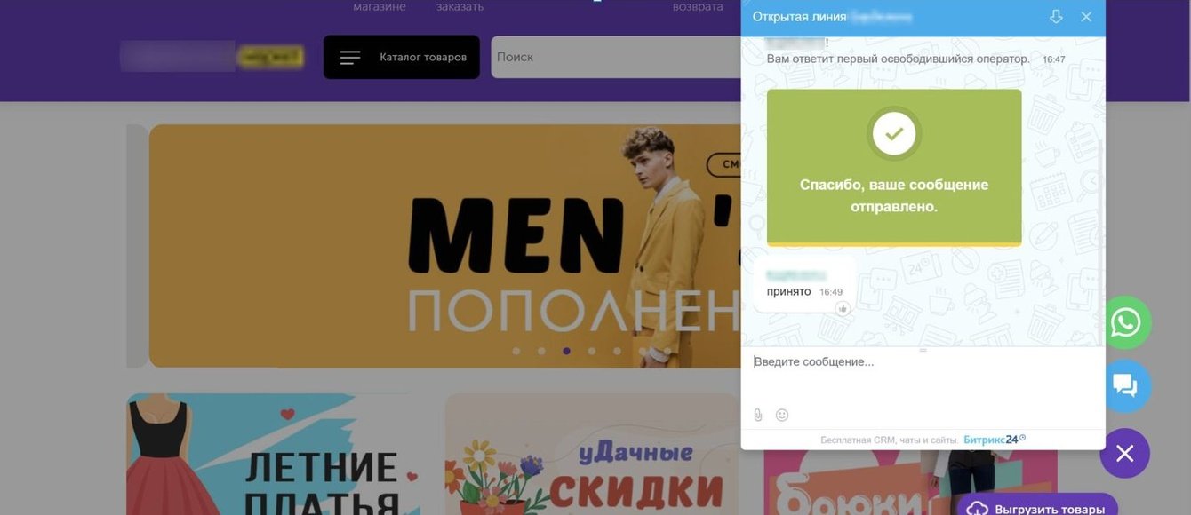 ● Мы реализовали онлайн-чат на сайте, чтобы сотрудники могли общаться с клиентами в режиме реального времени.