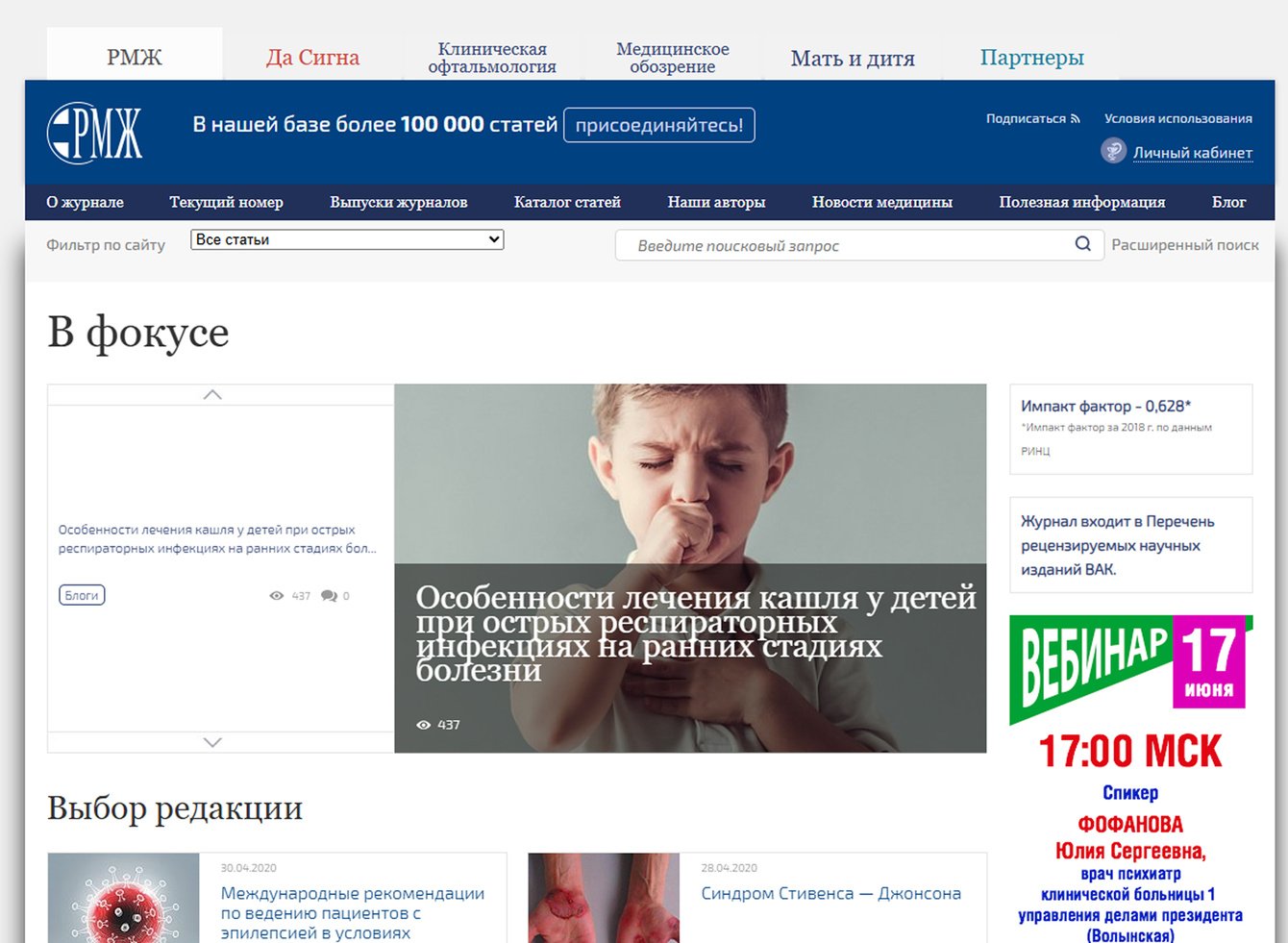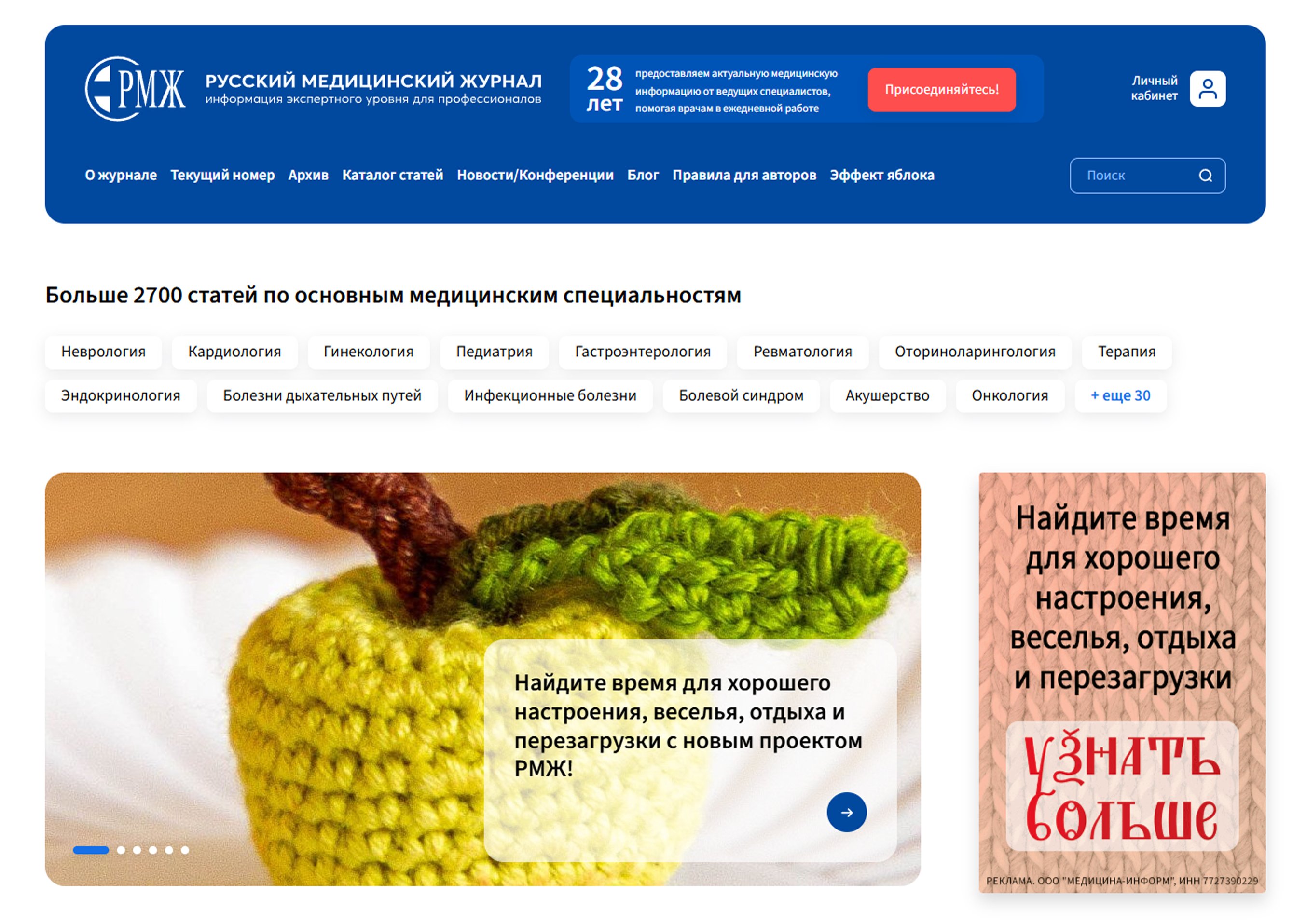 К нам обратился «Русский медицинский журнал» — один из крупнейших медицинских издательств России. Задача — обновить устаревший сайт без потери трафика и функционала, улучшить юзабилити и увеличить количество регистраций. Мы не просто сделали редизайн, а переосмыслили структуру ресурса и нашли способ монетизировать отказной трафик за счёт запуска дополнительного проекта.
