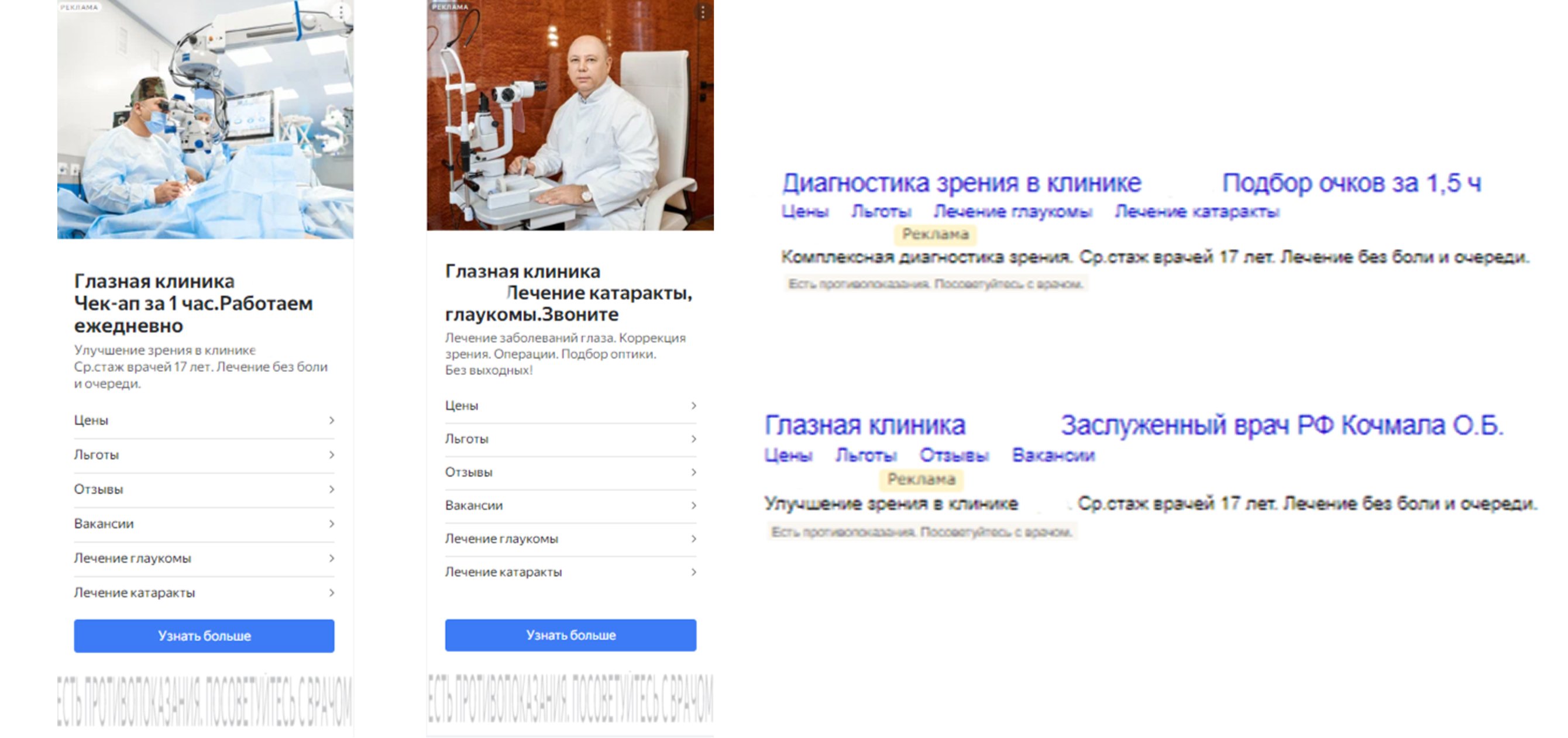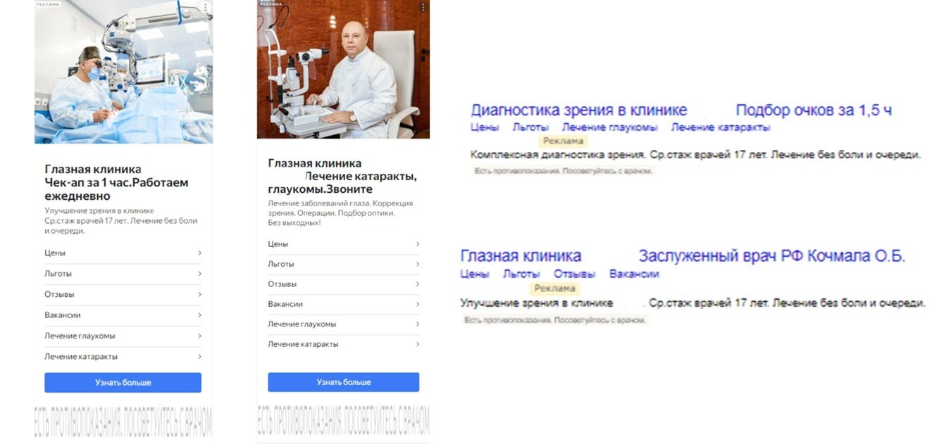 - Разработать стратегию продвижения в контекстной рекламе для всех направлений клиники.