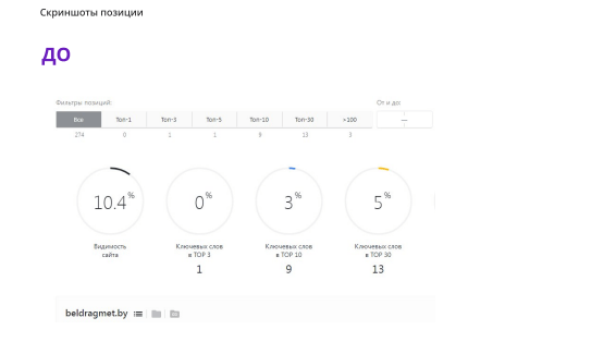результаты по продвижению в поисковых системах, но за всё время продвижения с сайта поступило всего 3 заявки.
