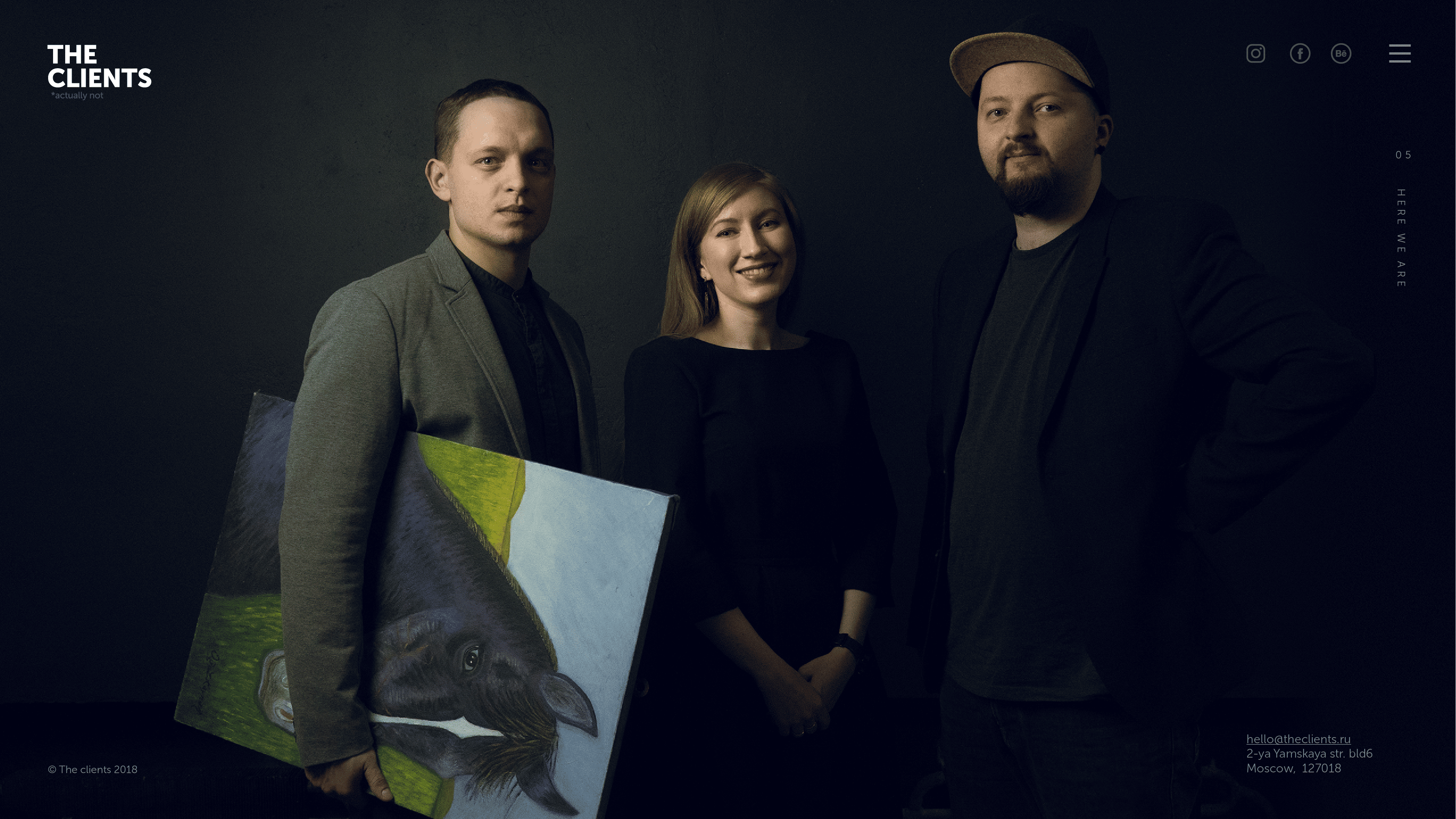 Первым делом мы определили проблему — старый лендинг был заглушкой, а не витриной. Причина в том, что до создания The Clients мы работали в других агентствах и запускали крутые проекты. Только вот делиться ими на сайте нашей новой компании мы не могли — пришлось срочно прикрыть этот пробел лёгким безумием, чтобы у наших клиентов не возникало вопросов. Так прошлая версия сайта жила семь лет. Как ни странно, она работала.