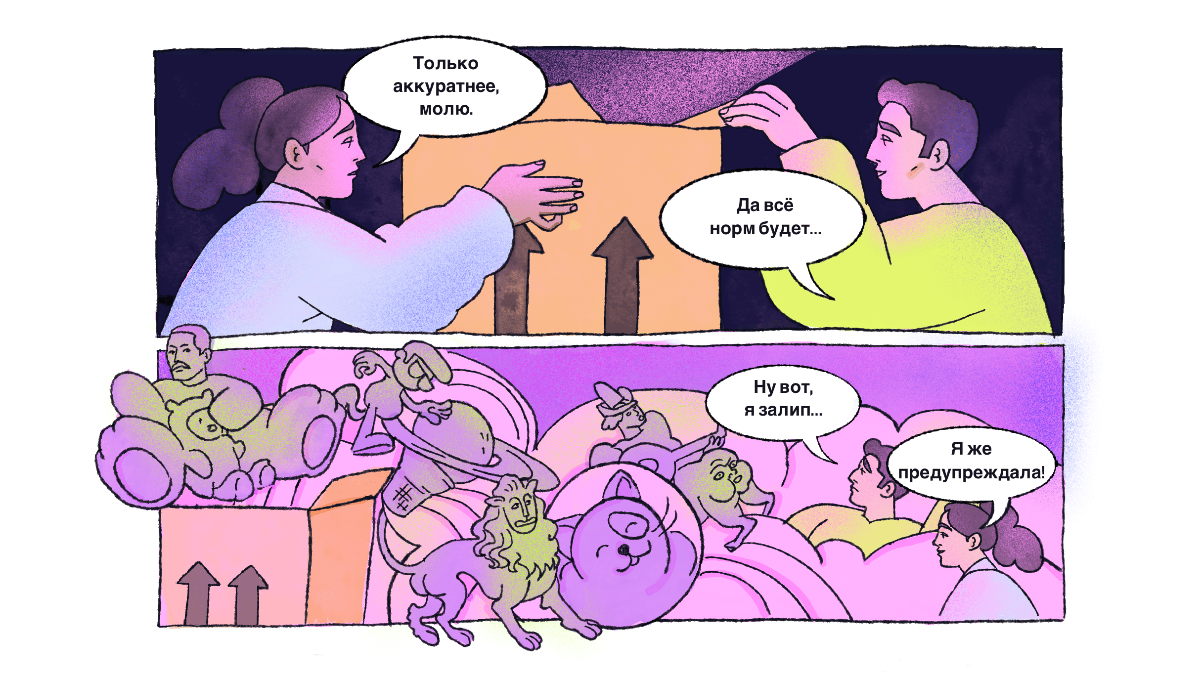 2. Динамичную. Хаотичные стикеры, видео с нотками СДВГ и яркий подвал отражают нашу скорость, креативность, живость.