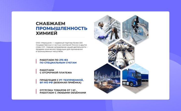 Наполняя сайт, мы добавили блоки с перечислением преимуществ, которые являются важными для нашей целевой аудитории. Указали, с какими крупными клиентами компания уже работает, а также добавили блок с отзывами в виде благодарственных писем, чтобы вызвать больше доверия у покупателей. На товарные страницы после раздела с описанием добавили блок со схожими товарами, которые также могут заинтересовать пользователя.