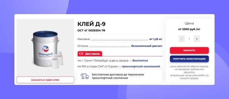 Добавили кнопку «Получить консультацию», так как в данной тематике у клиентов часто возникают технические вопросы. Указали стоимость, потому что это важный коммерческий фактор, необходимый для ранжирования.
