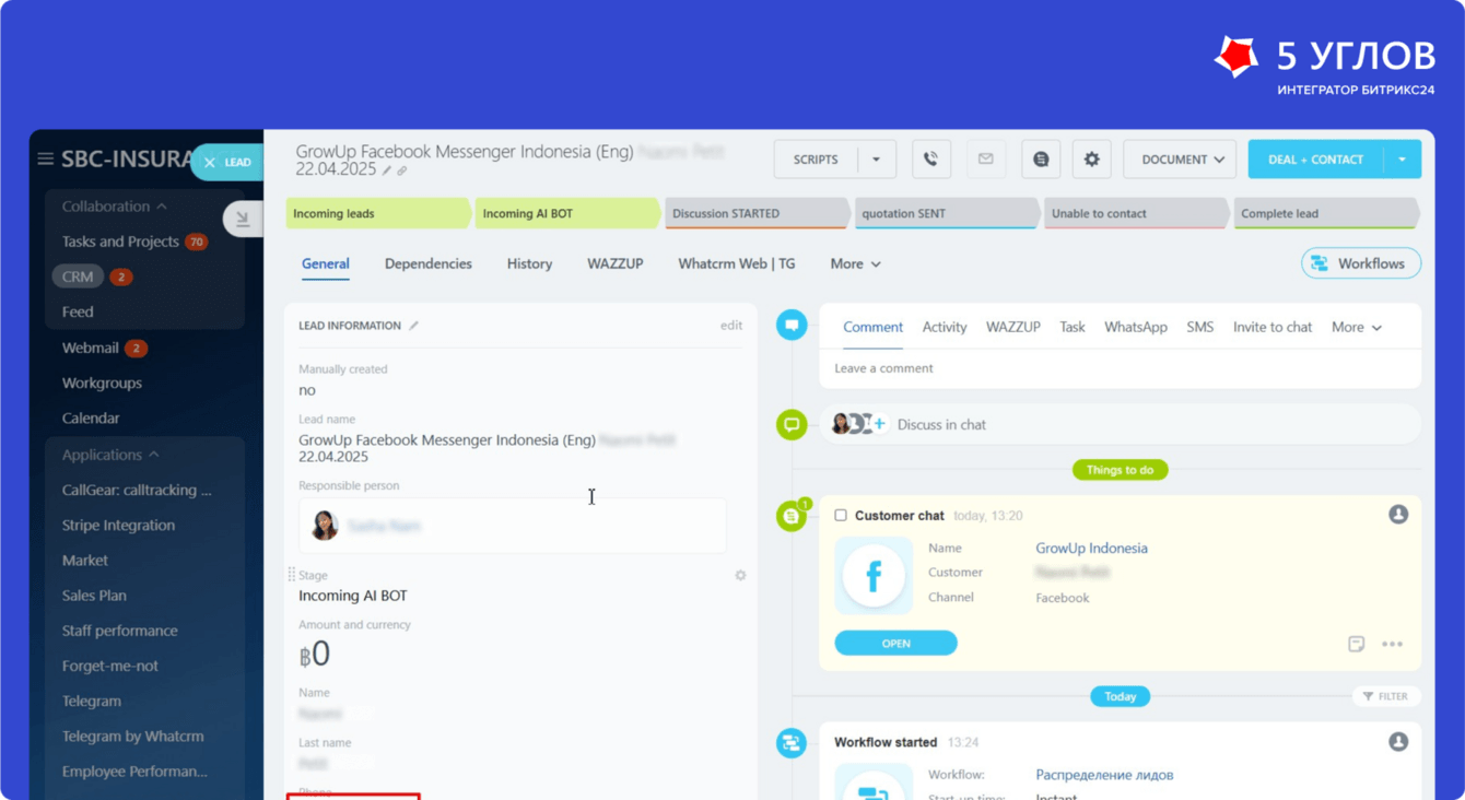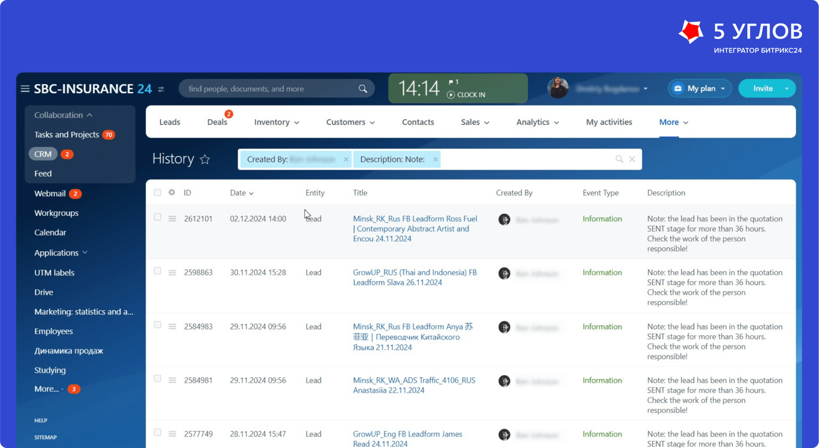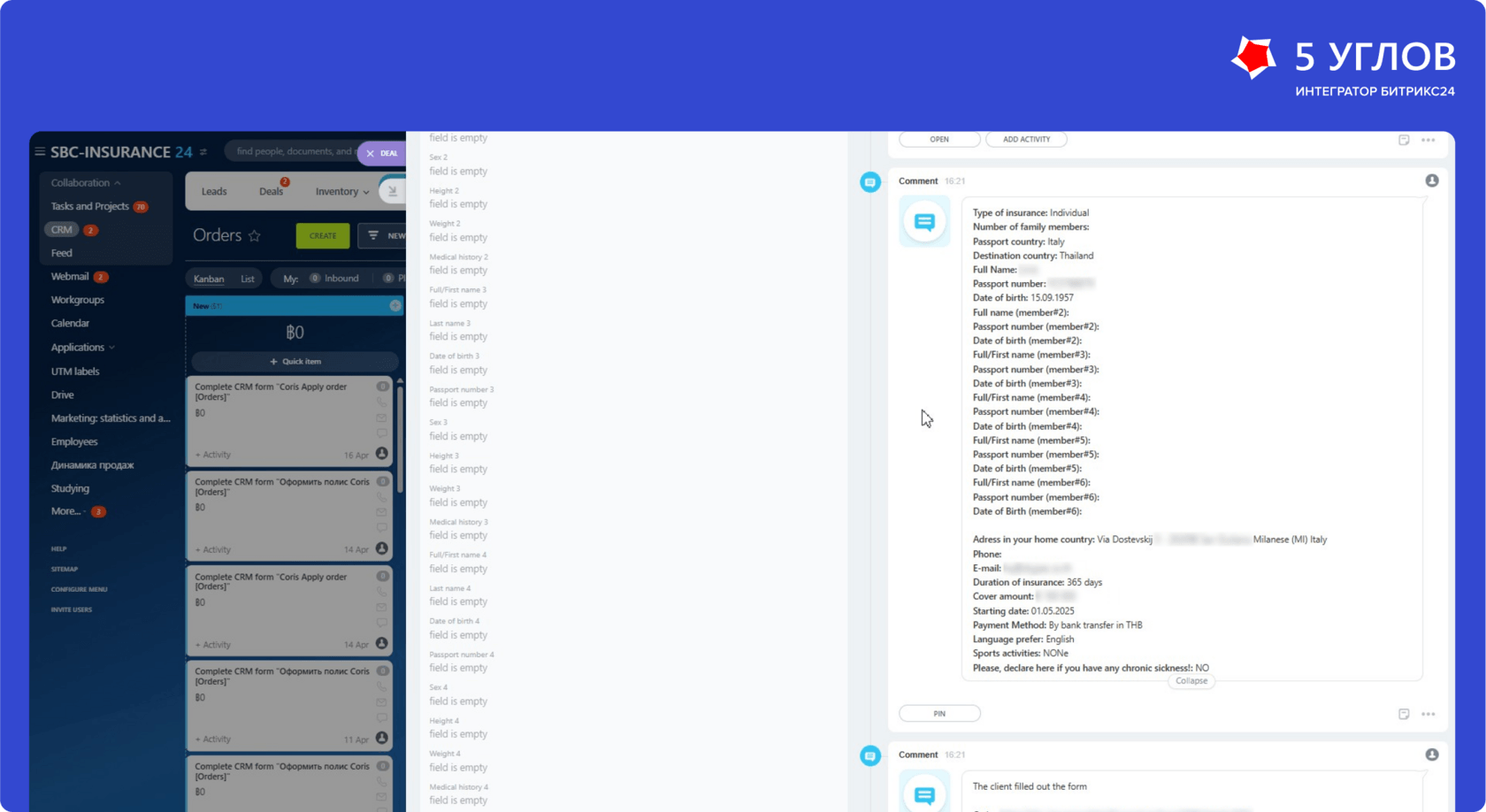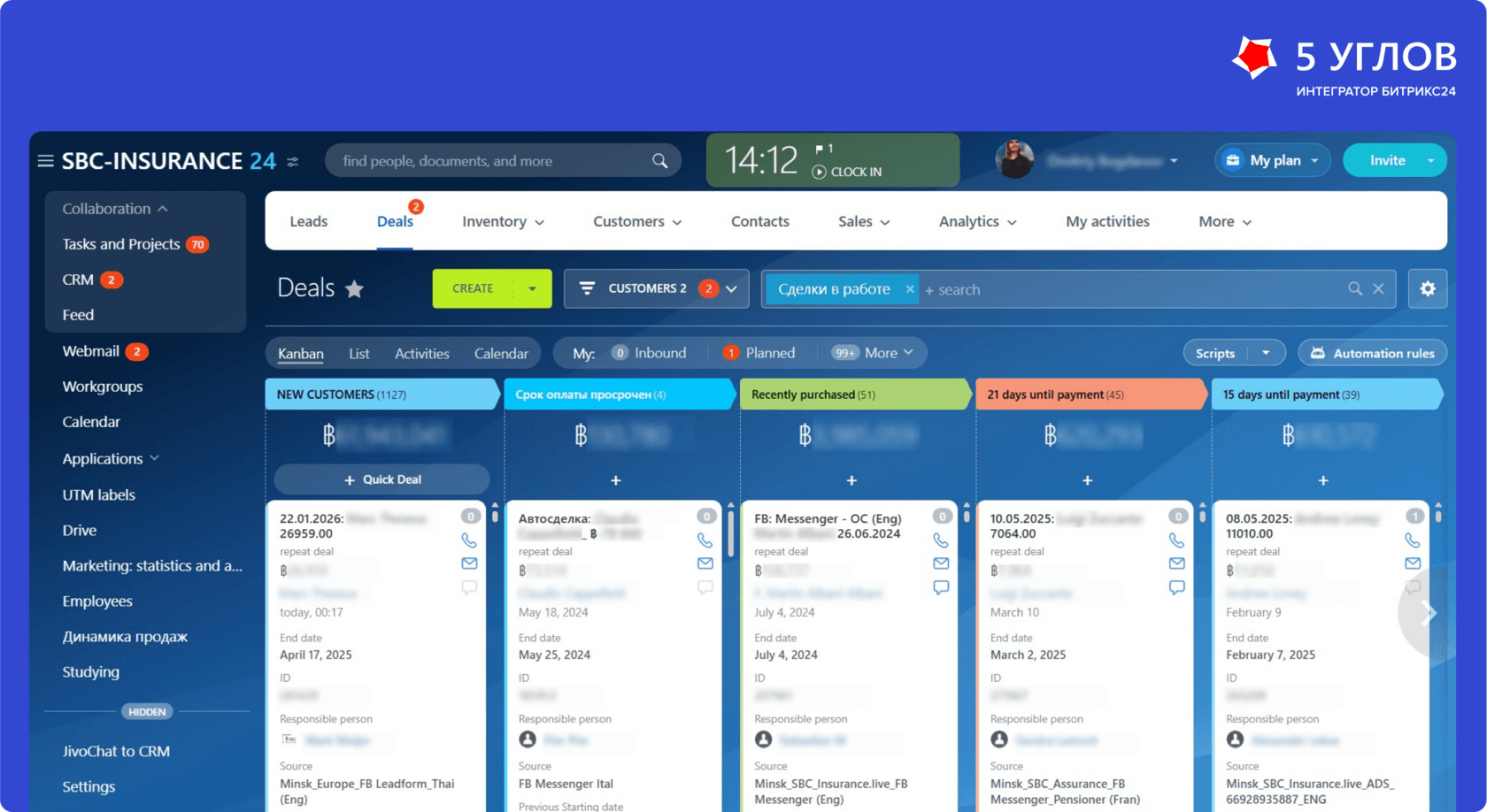 Мы оптимизировали работу SBC Insurance с лидами в международной среде, автоматизировали распределение заявок, повысили скорость реакции менеджеров и внедрили инструменты контроля качества, ранее недоступные в системе.