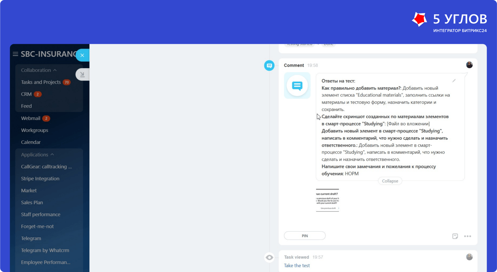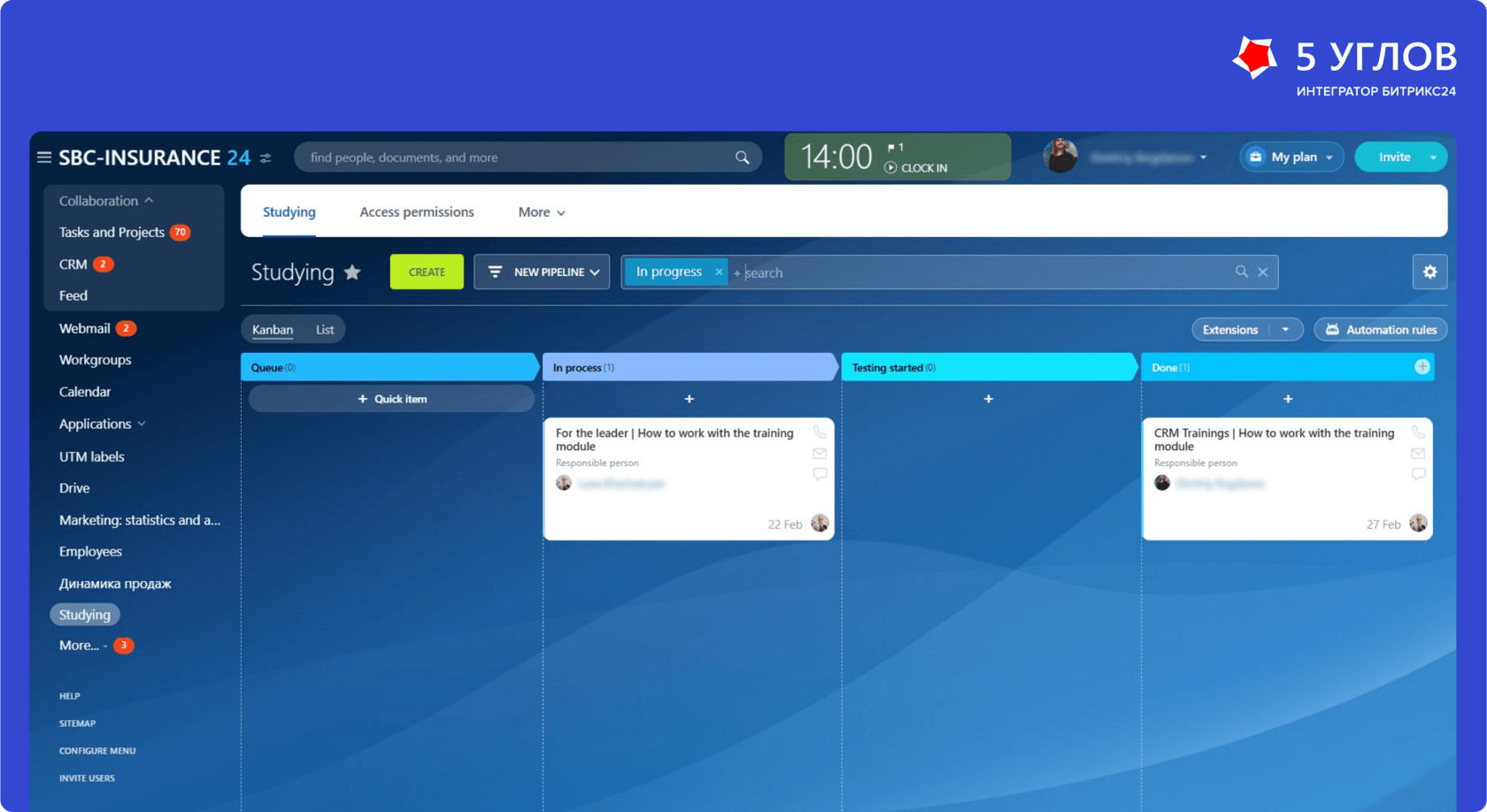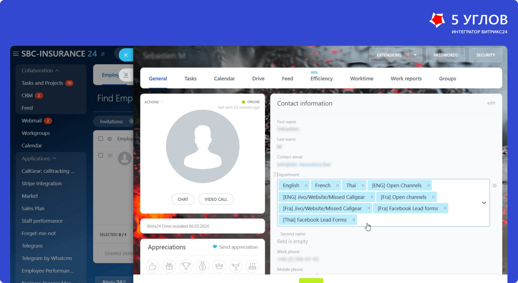 На базе облачного Международного Битрикс24, тариф «Профессиональный» мы внедрили: