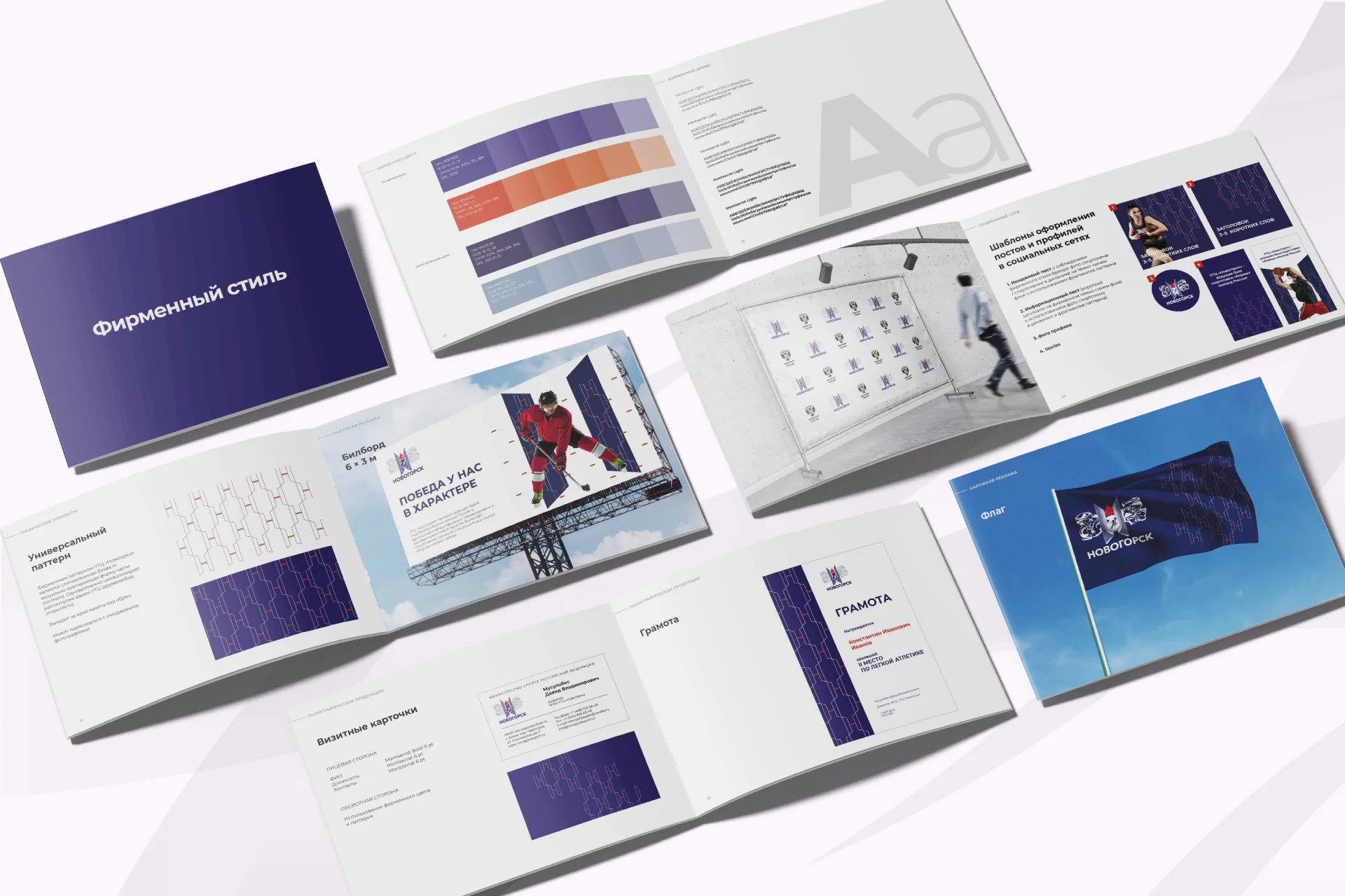 Завершающим этапом работы стала разработка брендбука – полного руководства по использованию всех визуальных и смысловых компонентов нового бренда УТЦ Новогорск. Брендбук включает описание миссии и ценностей центра, правила использования логотипа, цветовой палитры, шрифтов и графических элементов в различных медиаформатах.