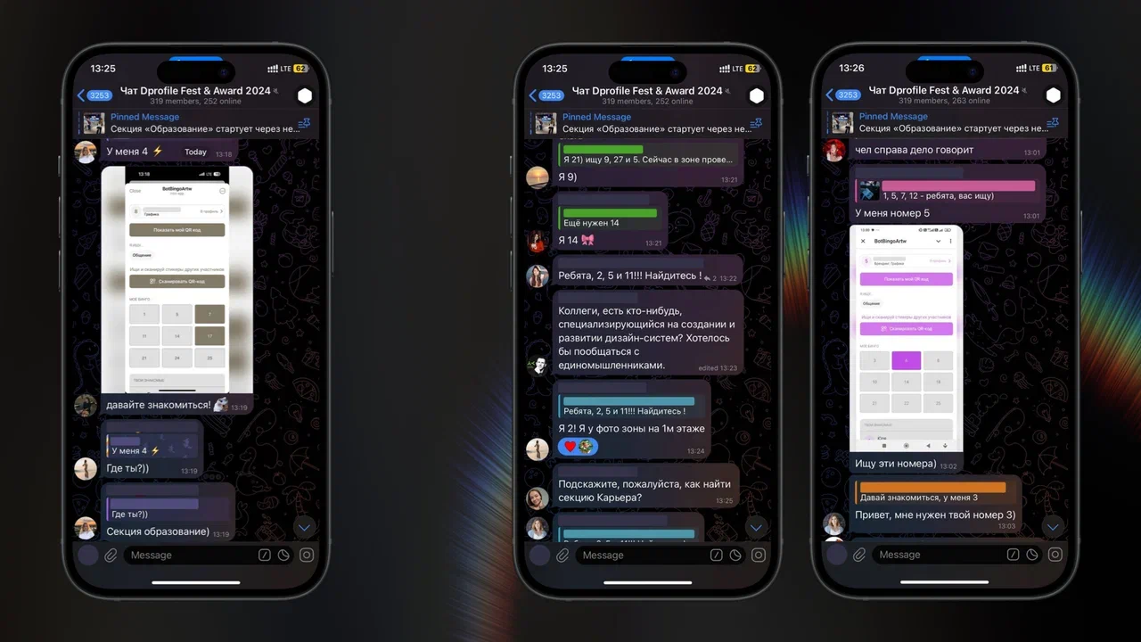 Наше участие в Dprofile Fest & Award быстро привлекло внимание участников. Несмотря на технические сложности в первые минуты, у стенда собралась большая толпа. Игра стала хитом уже через час после запуска, а чат фестиваля наводнило сообщениями вроде «Кто тут с цифрой 23?», «Ищу номер 6!», «Срочно нужен 25!». Мы поняли — это успех!