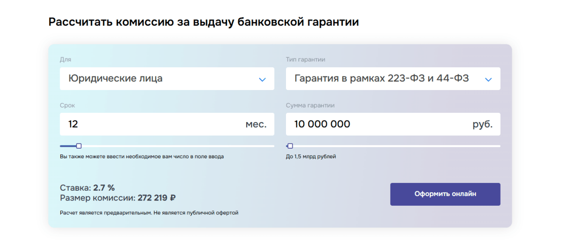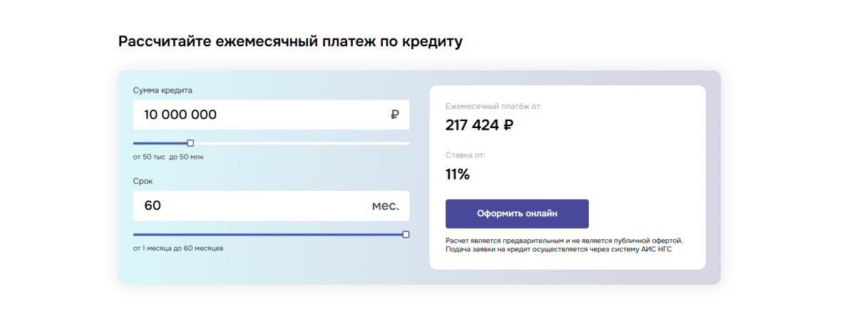 Отдельный блок работы — настройка калькуляторов кредита и банковский гарантий банка.