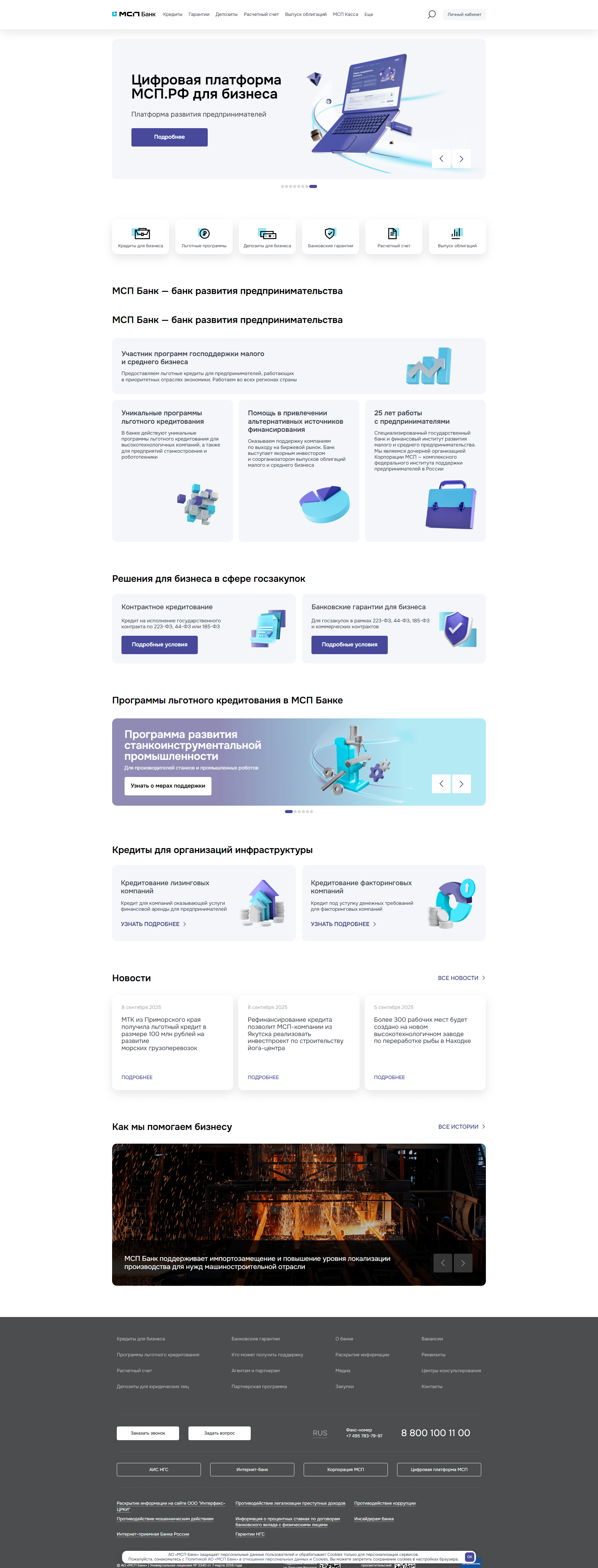 За время работы над проектом мы прошли с «МСП Банком» полный цикл: разработка сайта, поддержка, редизайн и снова поддержка. Запустили новую версию сайта в сжатые сроки, развернули API-интеграции, подключили необходимые сервисы, обеспечили устойчивость и удобство UX для всех аудиторий, включая слабовидящих пользователей.