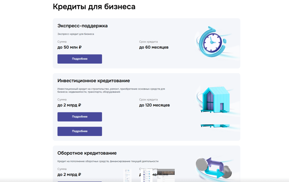 Также обновили дизайн калькуляторов для расчета кредитов, депозитов и РКО. Все они работают с актуальными данными и предоставляют пользователю понятный результат. Вычисления и интеграции с API могут использоваться как на сайте, так и на внешних цифровых каналах банка.