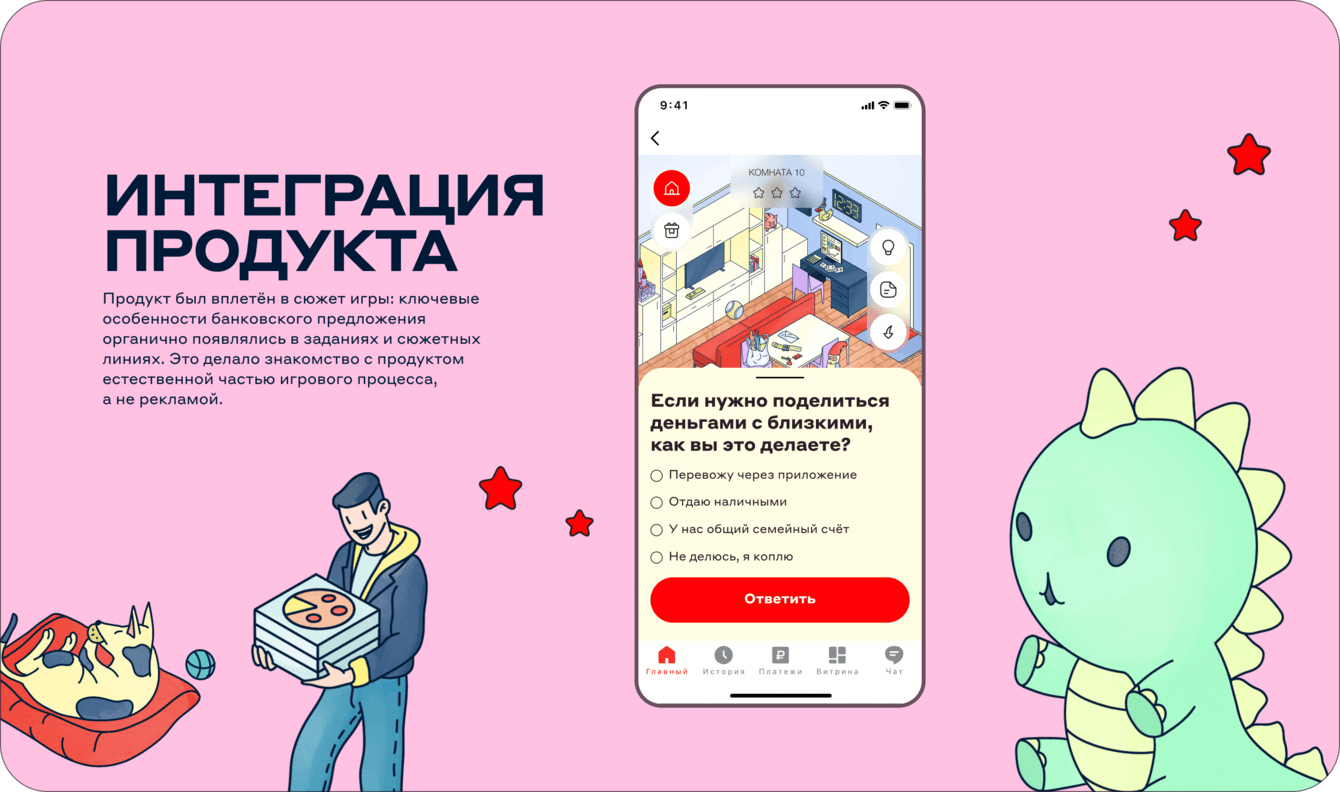 Вопросы строились вокруг повседневных сценариев использования семейной карты. Это позволило ненавязчиво демонстрировать преимущества продукта прямо в игровом процессе.
