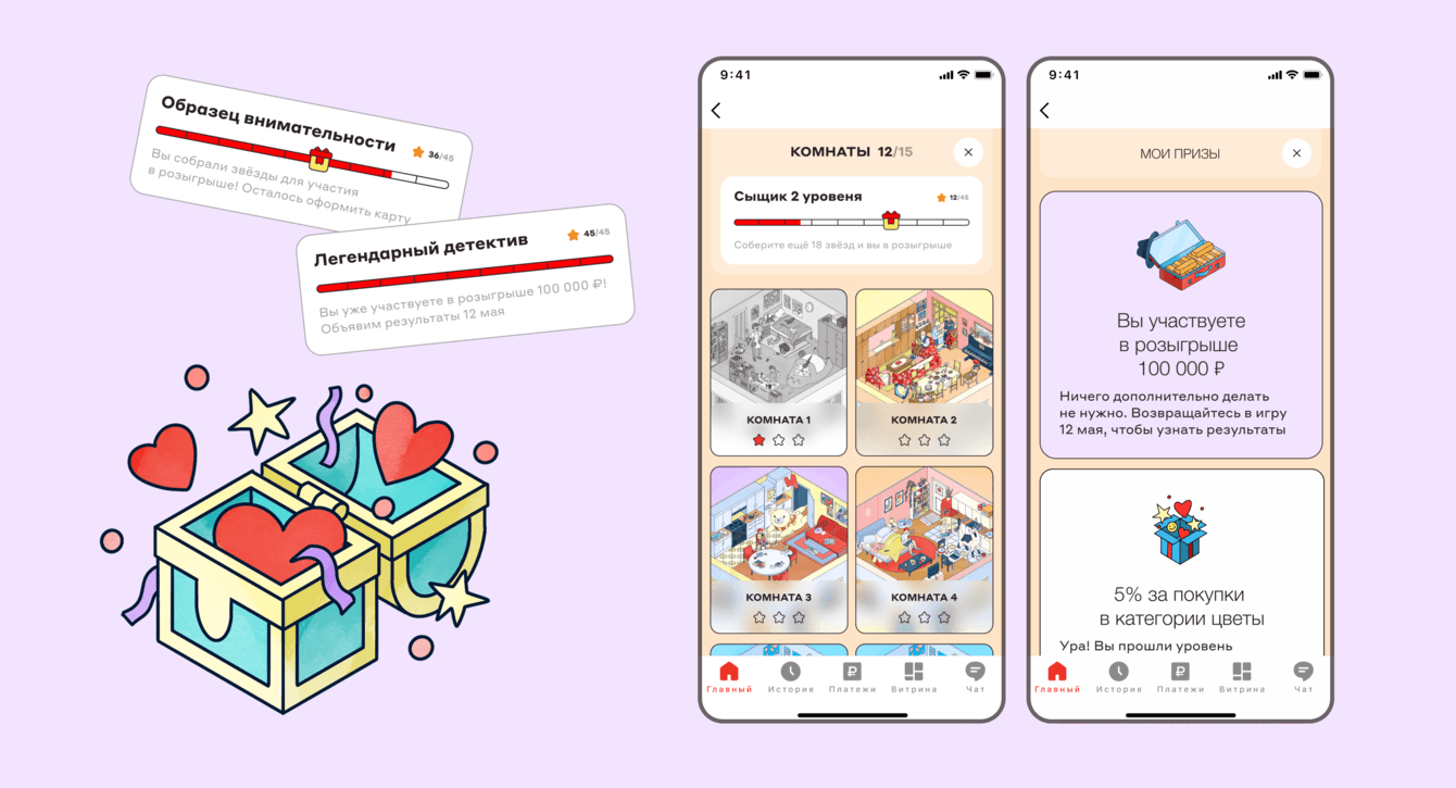 Цель: Через игровую механику органично подвести пользователей к оформлению карты, увеличив при этом время взаимодействия с приложением.