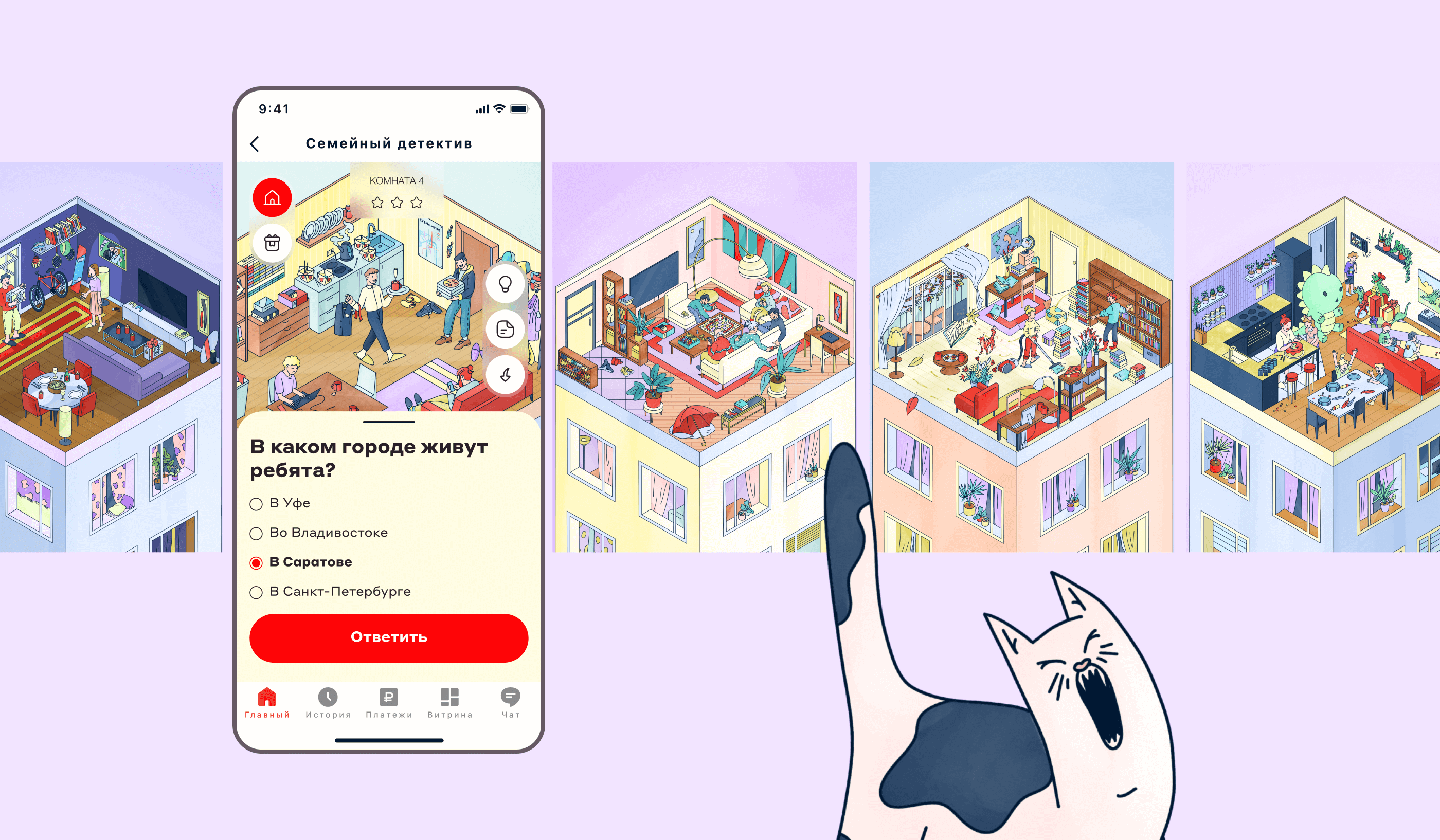 Вопросы строились вокруг повседневных сценариев использования семейной карты. Это позволило ненавязчиво демонстрировать преимущества продукта прямо в игровом процессе.