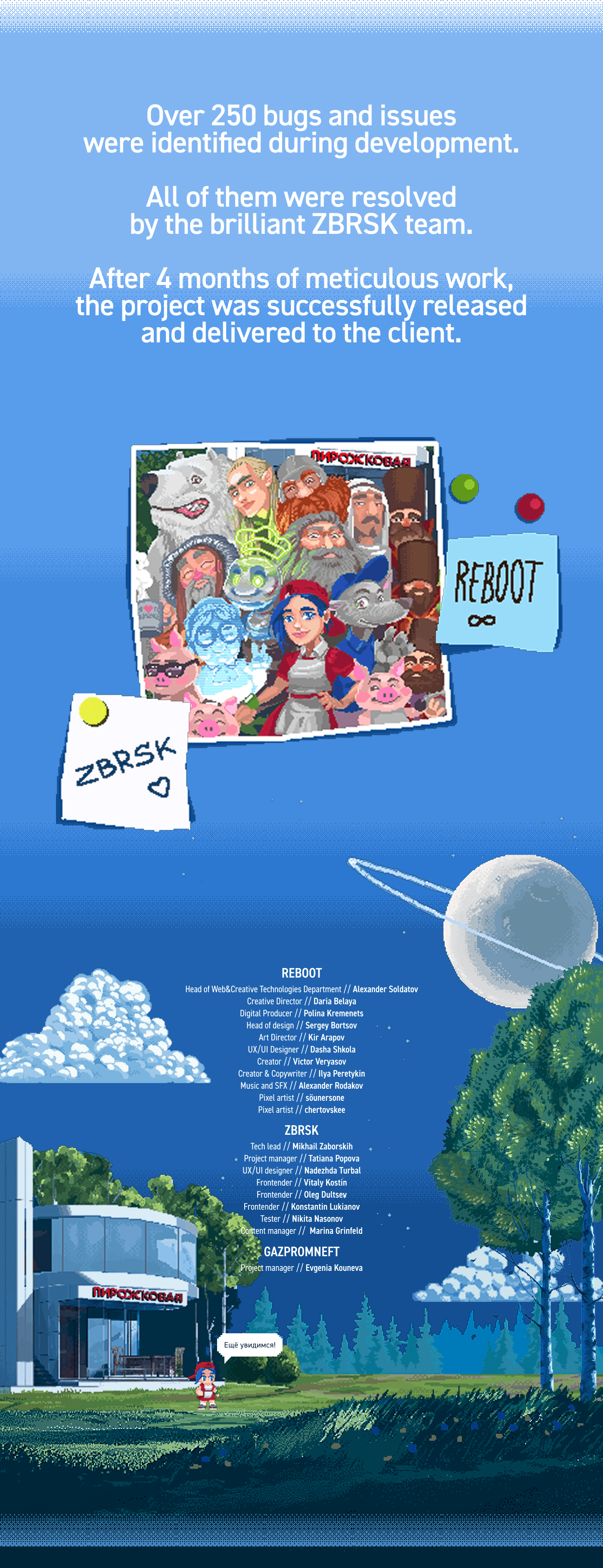 Коммуникация с командой на протяжении всего проекта была прозрачной — это и понравилось. REBOOT не боялись предлагать нестандартные решения, но учитывали ограничения с нашей стороны, которые я, как могла, минимизировала, но совсем без них тоже было бы невозможно