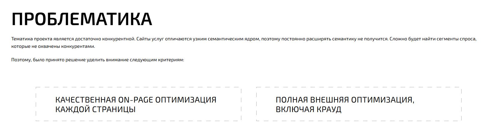 На основании исследования целевой аудитории и конкурентов составили ряд требований к нашим страницам и написали оптимизированные уникальные тексты, с использованием собранной семантики.