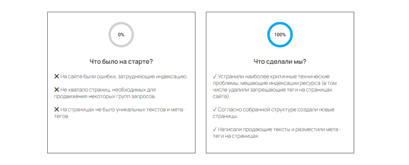 На сайте отсутствовал ряд посадочных страниц, необходимых для продвижения немалого пула запросов. Имелись проблемы и с индексацией содержимого.