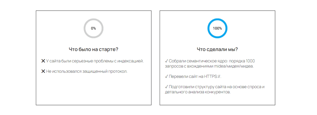 Задача: встать в ТОП, обогнав таких мастодонтов выдачи как М.Видео, Эльдорадо, ТехноПарк, Ситилинк и др. Повышение уровня онлайн-продаж через улучшение видимости брендовых запросов.