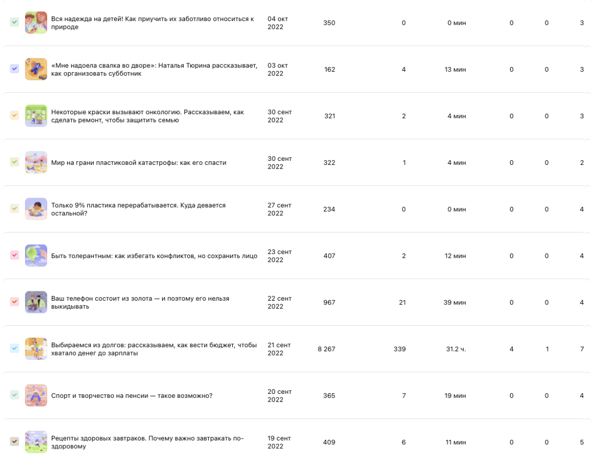 Нам удалось выйти на стабильные 10 000 дочитываний в месяц и таким образом закрыть весомую долю задач по дистрибьюции медиа. В некоторые месяцы могут возникать пики. Например, за ноябрь, декабрь и январь статьи собирали по 50 000+ дочитываний ежемесячно.