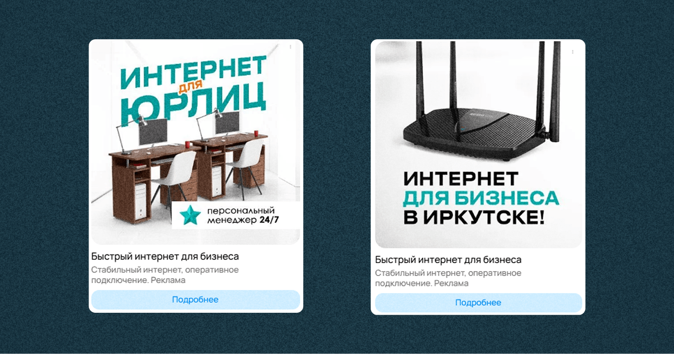 Также в декабре 2025 года в качестве тестирования гипотез добавили рекламу на юридических лиц (интернет для бизнеса). Несмотря на наличие в Avito прямой аудитории «Связь для бизнеса», мы расширили таргетинг, чтобы охватить более широкую целевую группу: