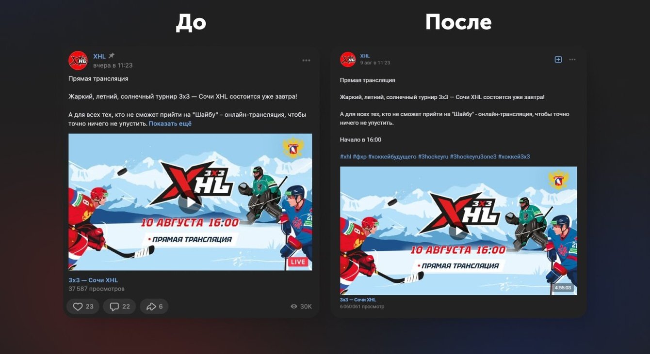 Опубликовали пост с анонсом эфира и взяли его в модерацию рекламы, а как только наступило время эфира в течение 2х часов оттестировали наиболее эффективные аудитории и масштабировали. Пока не набрали 6 млн. целевых просмотров от хоккейных болельщиков