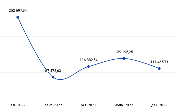 Динамика стоимости продажи авто с августа по декабрь 2022 гг.: