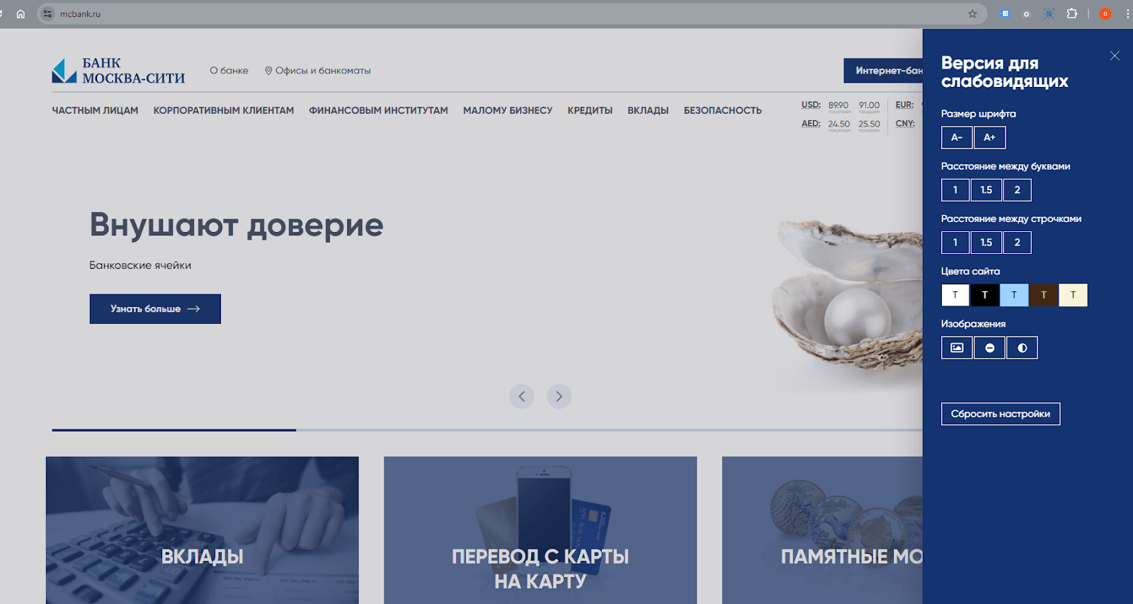 Выработали решение по добавлению возможности изменения размера шрифта, межстрочного и межбуквенного интервала, возможность изменения цветовой гаммы сайта, возможность отключения изображений на сайте.