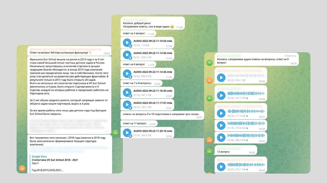 Мы проводим интервью в удобном для заказчика формате: коллеги из Sun School ответили на все вопросы подробными голосовыми сообщениями, которые мы расшифровали и использовали для написания текстов. Вот столько вводной информации мы получили после проведения интервью:
