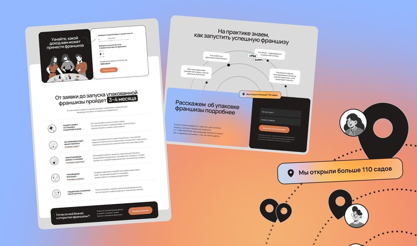 3. Подчеркнуть опыт компании в сфере франчайзи. Для этого мы вводим большой блок, раскрывающий историю Sun School и периодически подчеркиваем, как этот путь ошибок помогает им открывать другие франшизы.