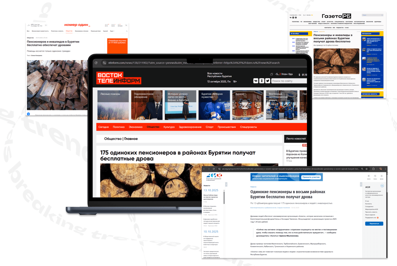 В социальных сетях и СМИ мы не только рассказывали о планах Арюны и собирали деньги на дрова для стариков, но и рассказывали о деятельности АНО «Аэлита»: