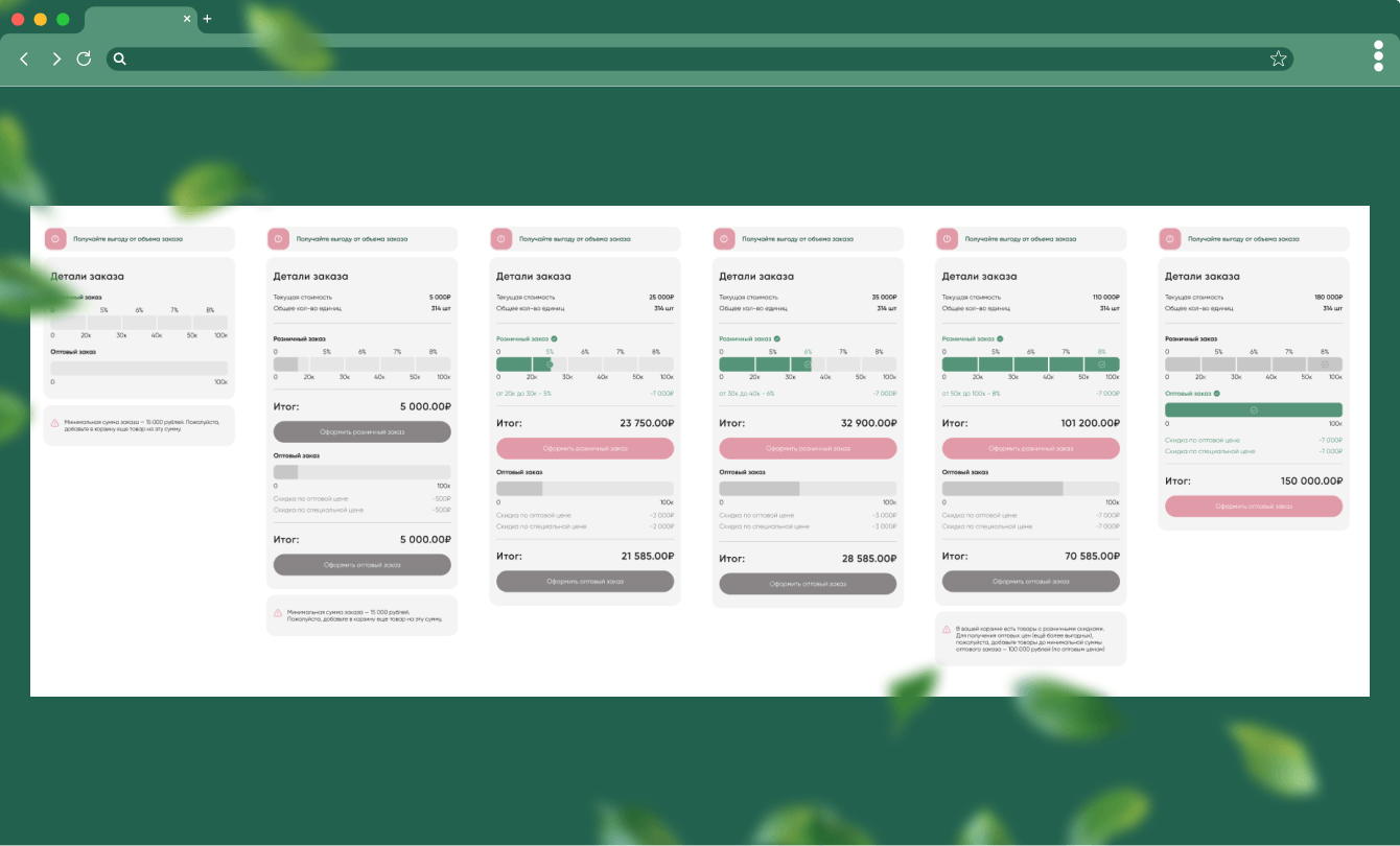 – с продуманной логикой повторных покупок, возможностью работы как в B2B-, так и в B2C-формате, а также системой скидок, зависящей от суммы заказа и кратности коробам,