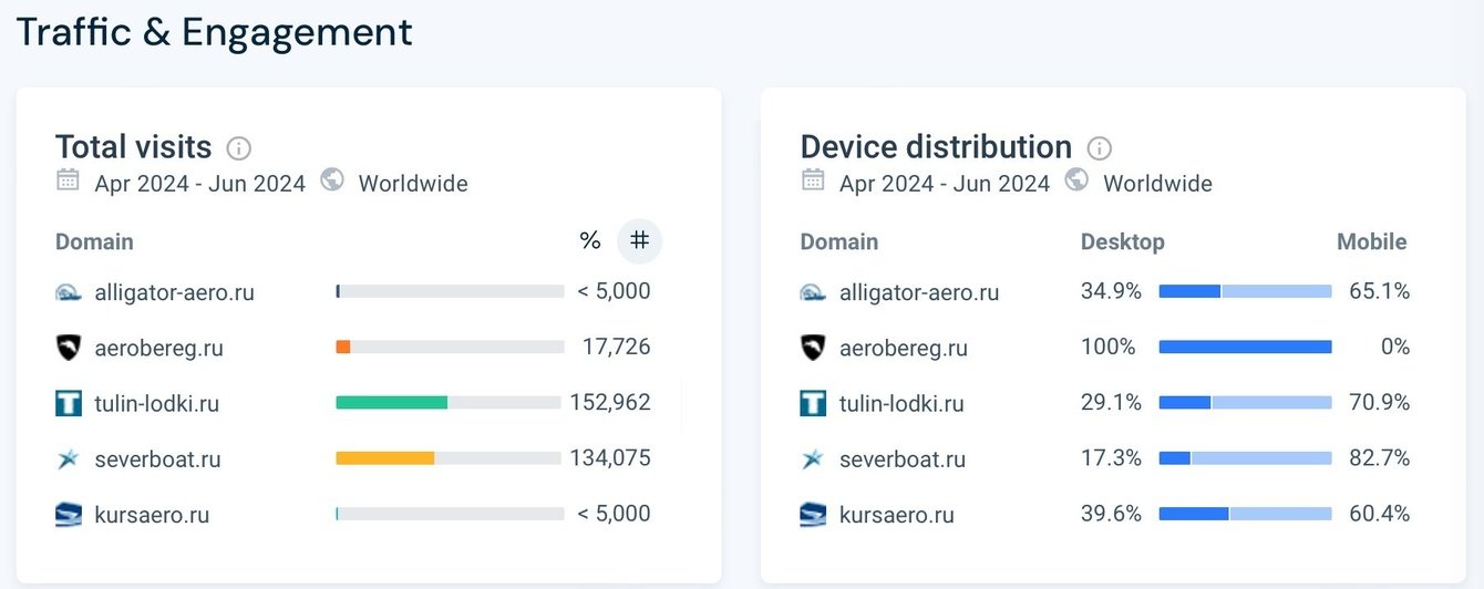 Как и всегда, мы начали с анализа рынка и конкурентов. В целом на рынке аэролодок установилась олигополия: крупные игроки могут значительно влиять на рынок, устанавливая стандарты качества, инноваций и обслуживания, что затрудняет конкуренцию для более мелких производителей.
