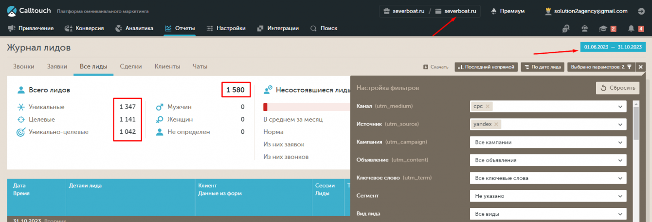 Видно, что в основном заявки летели за счет органического поиска, однако рекламные кампании и упоминания на сторонних сайтах тоже приносили неплохой процент лидов.