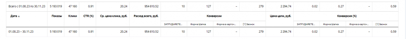 Стоимость клика (CPC): стоимость клика была на 20% ниже по сравнению с горячими ключевыми фразами: 2950 руб., что делало эти кампании более экономически эффективными.