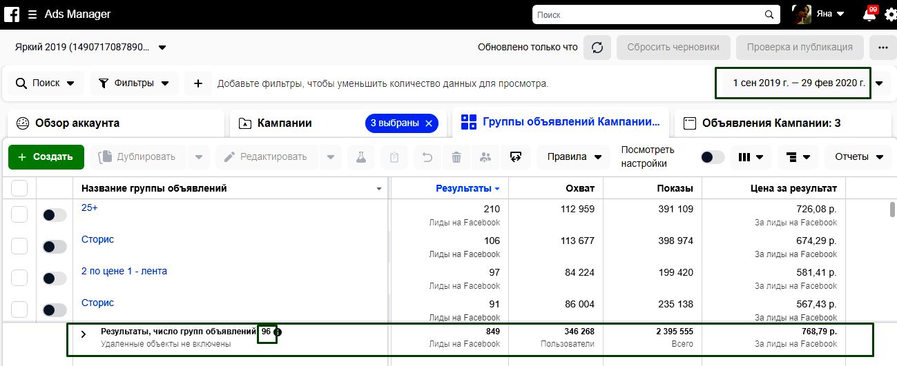 Результаты рекламной кампании: