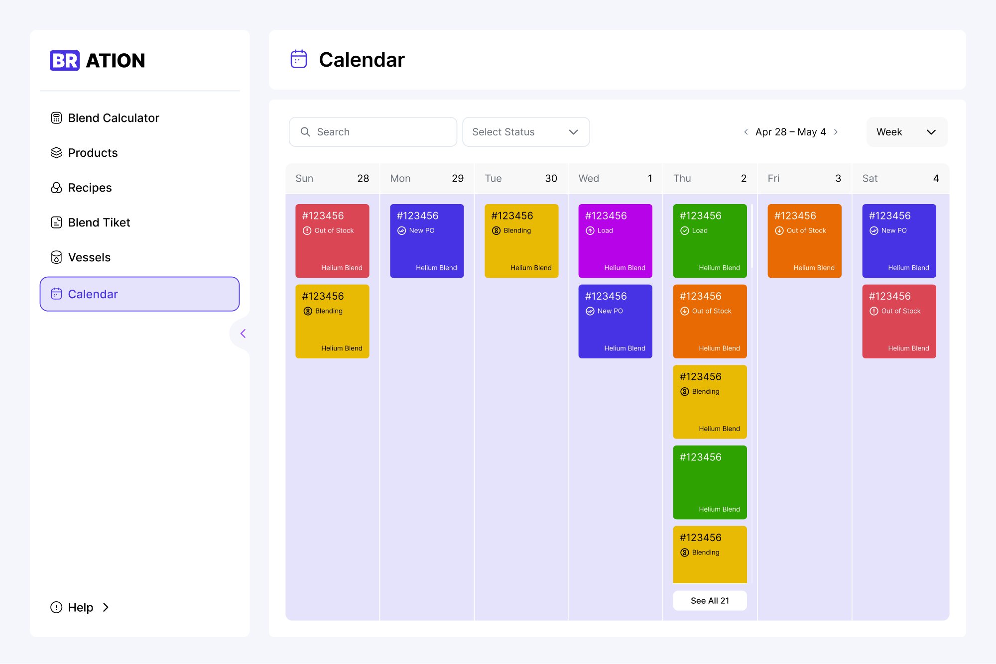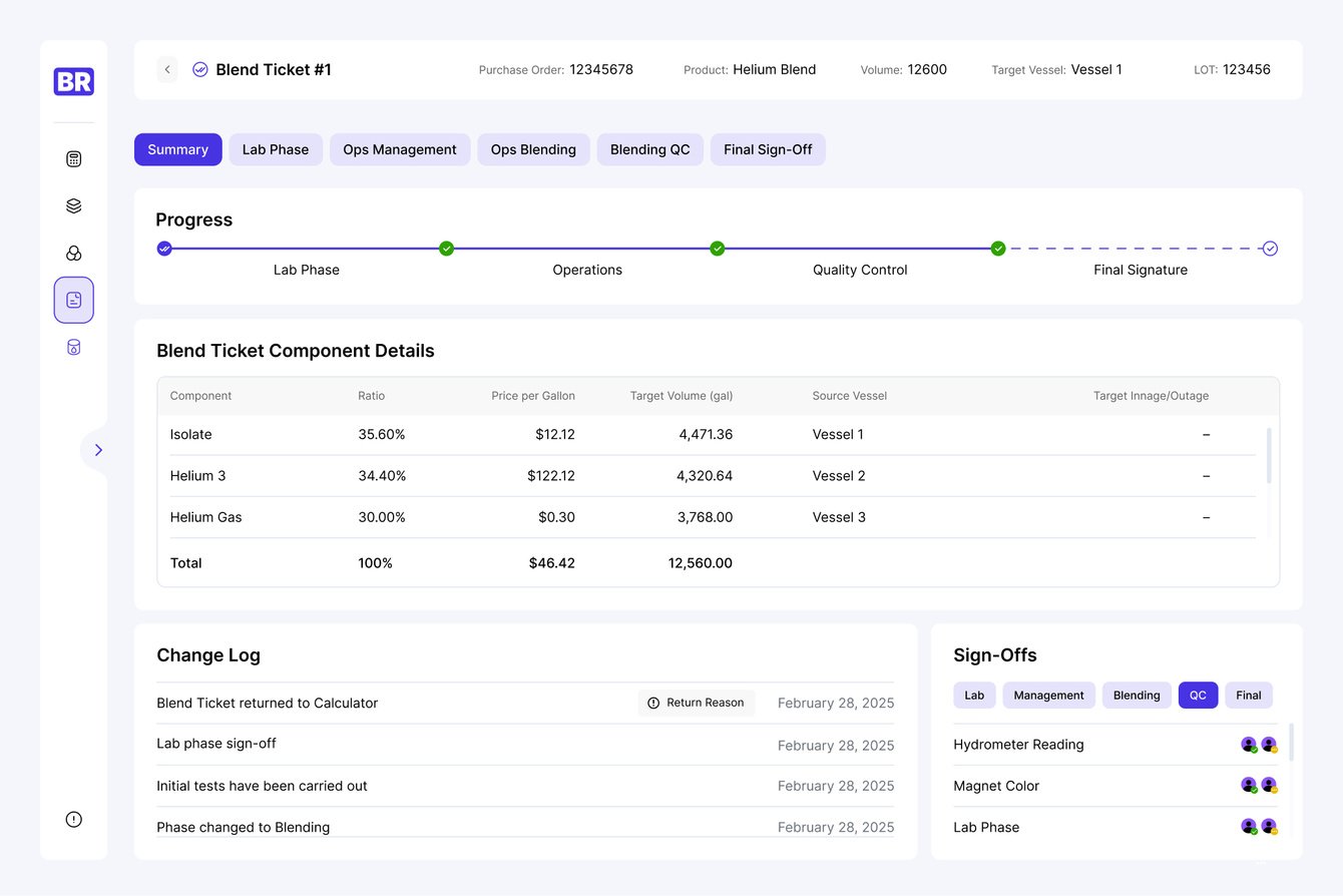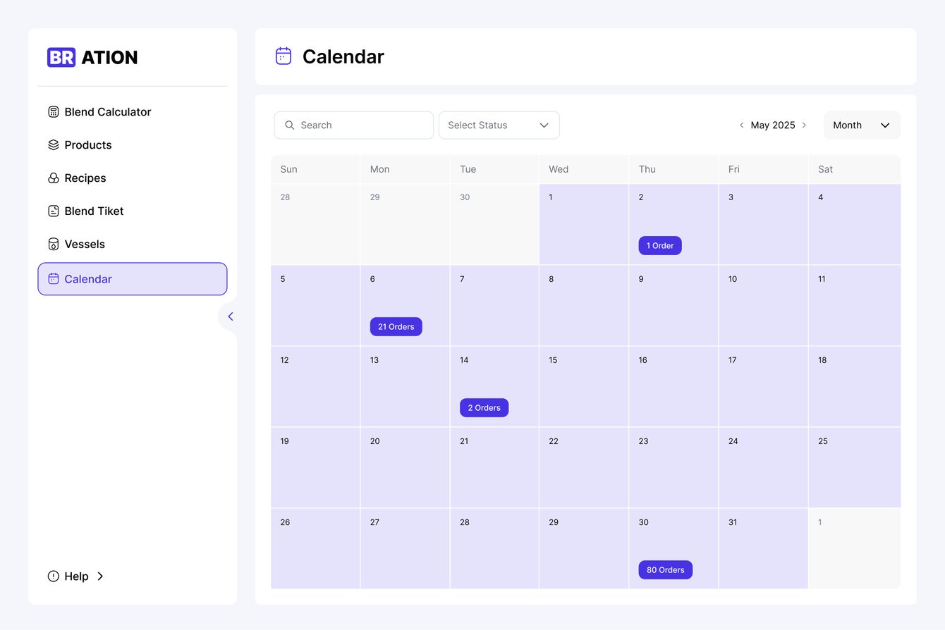 Получился следующий путь. Входная точка Inventory (здесь регистрируется заявка) → на ее основе производится расчет в Blend Calculator → формируется Blend Ticket → запускается производственный процесс. И это все отражается в Calendar.