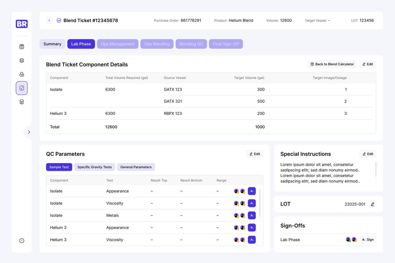 В какой-то момент мы поняли, что вся информация в Blend Ticket просто не влезает в экран. Там, где было 5 параметров, стало 10. И все это были нужные и важные данные, без которых не обойтись (все-таки это химическое производство, где цена ошибки слишком высока). Тут нам пришлось побрейнштомить на тему, как лучше подать информацию.